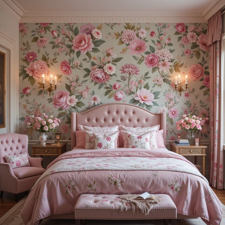 طرح‌های داماسک، گل‌های ظریف و نقوش سلطنتی انتخاب فوق‌العاده‌ای برای اتاق خواب‌های گرم و لوکس است.