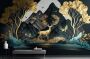 تصویر پوستر دیواری کلاسیک با طرح داماسک طلایی