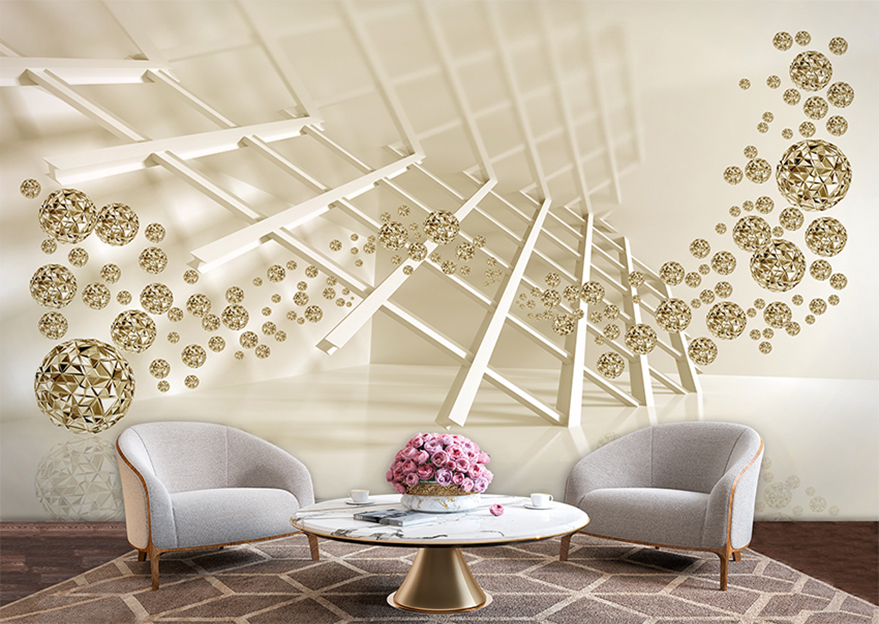 پوستردیواری سه بعدی با گوی های طلایی