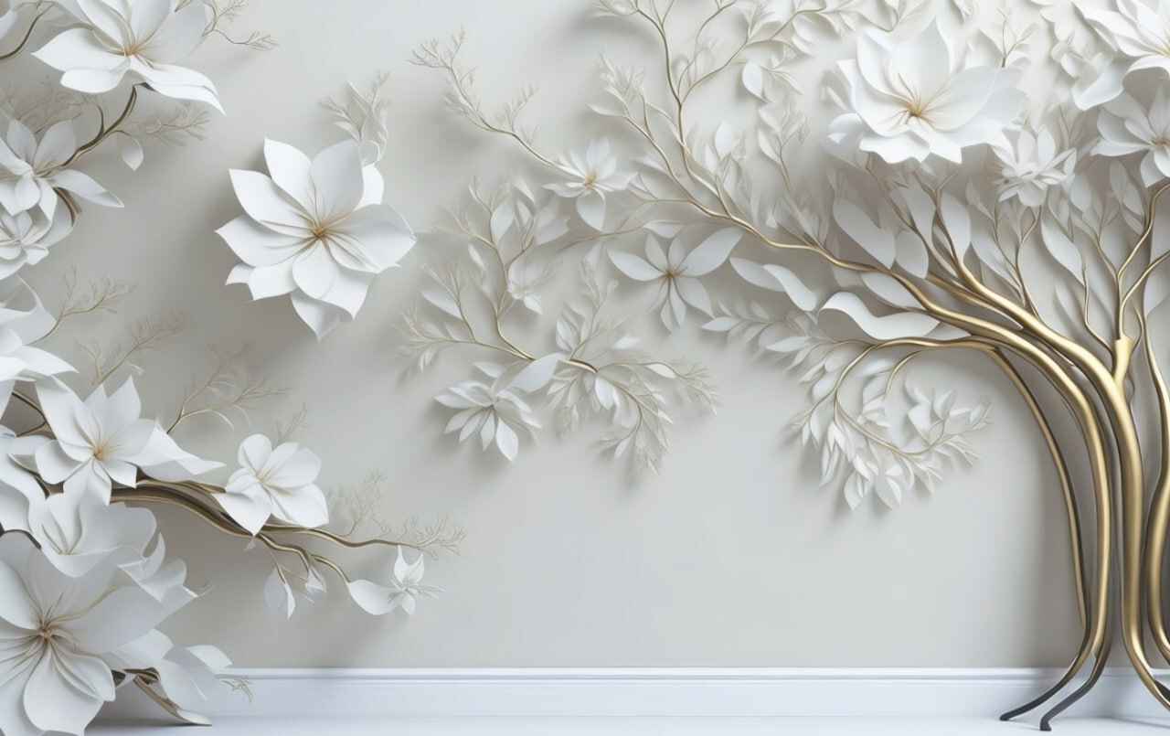 پوستر دیواری سه بعدی یکی از عناصر مهم در دکوراسیون داخلی مدرن است که میتواند فضای خانه یا محل کار را به شکلی چشمگیر دگرگون کند. در این طرح خاص، گلهای سفید ظریف و برجسته به همراه شاخهها و خطوط طلایی، ترکیبی جذاب و هنرمندانه ایجاد کردهاند. این پوستر دیواری با طراحی مینیمال اما بسیار لوکس، به فضا حس آرامش، لطافت و در عین حال شکوه میبخشد.