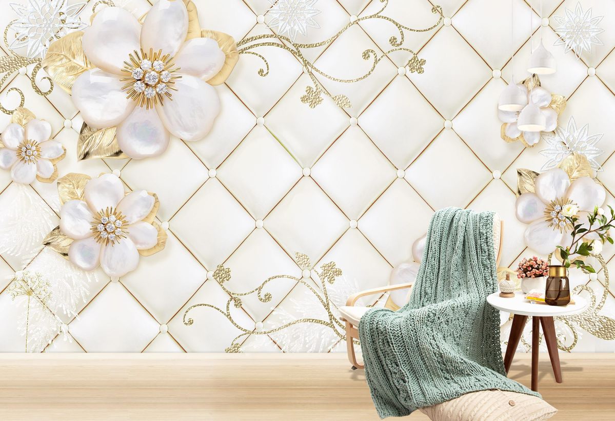 پوستر دیواری سهبعدی گل مرواریدی طلایی – انتخابی لوکس برای دکوراسیون داخلی مدرن
