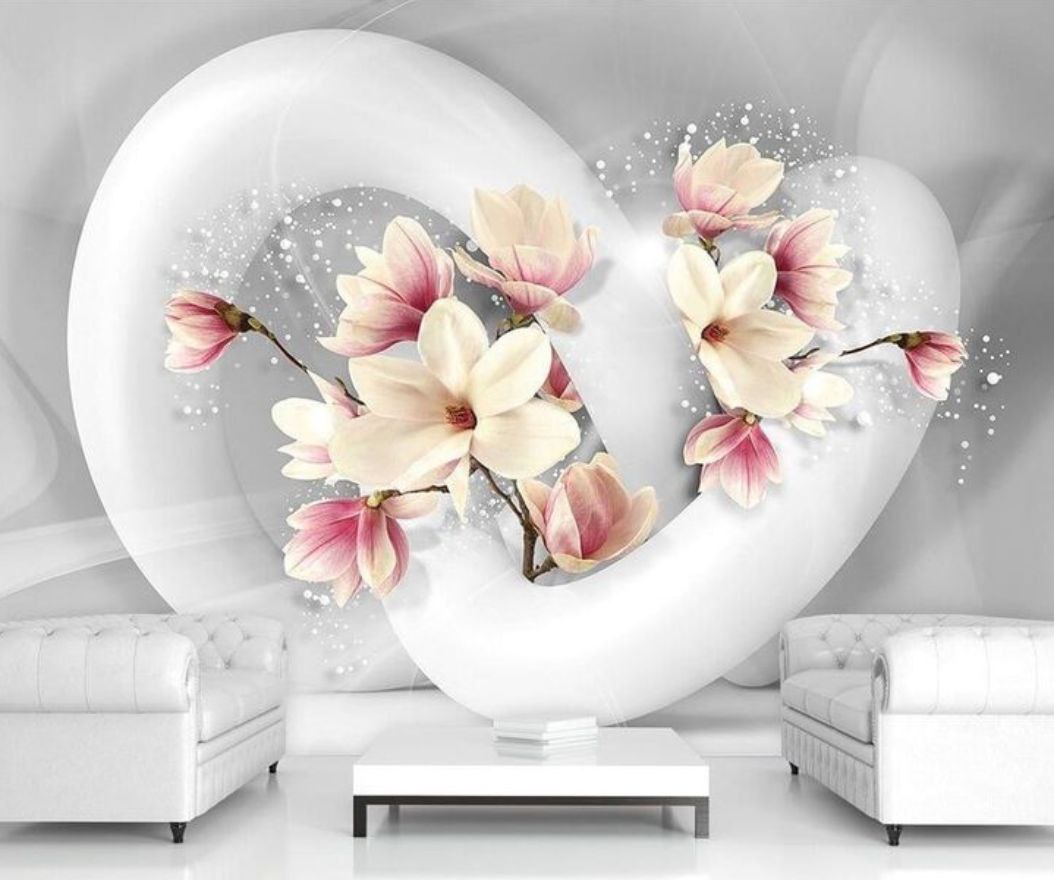 پوستر دیواری قلب گلدار مگنولیا | کاغذ دیواری رومانتیک و سه بعدی برای دکوراسیون منزل | وال یو
