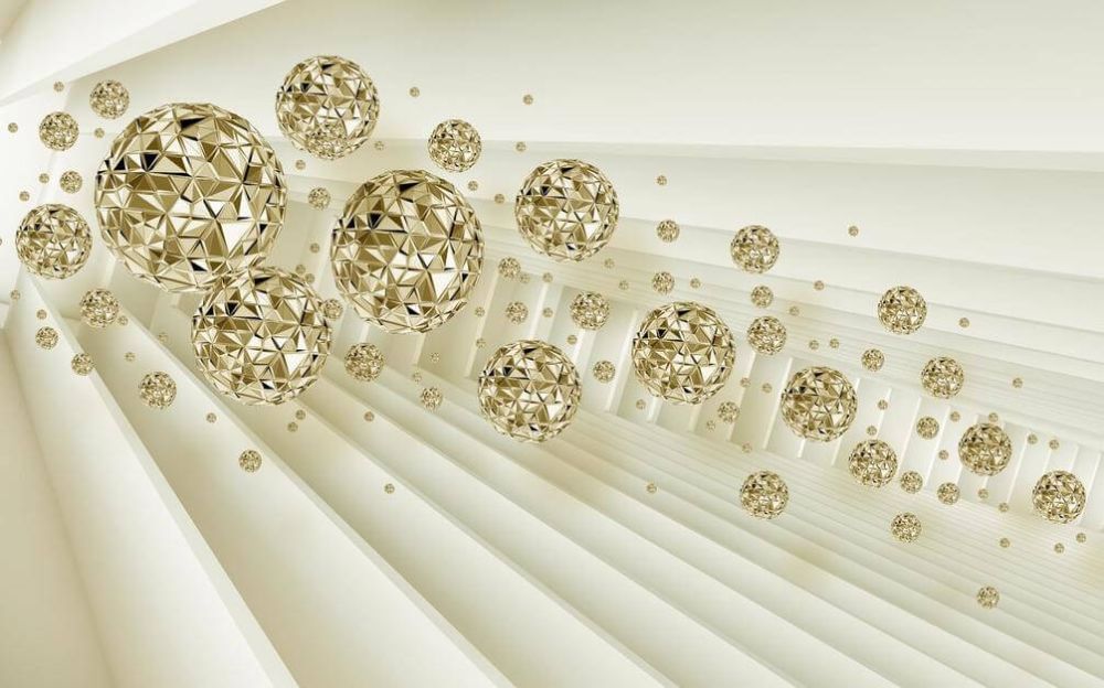 پوستر دیواری سه بعدی گوی‌های الماس طلایی لوکس | وال یو wallu.ir