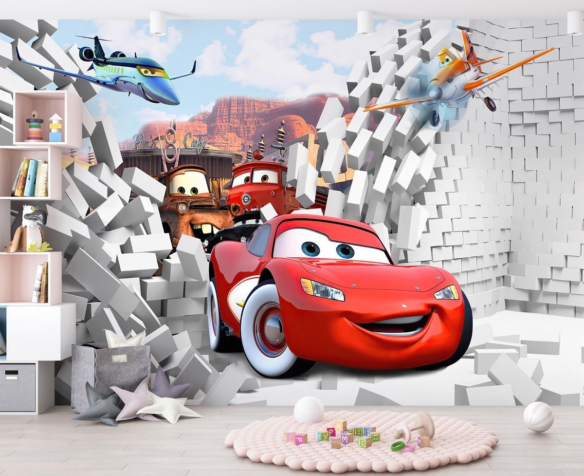پوستر دیواری سه بعدی مککویین و دوستان (Cars) دیوار شکسته