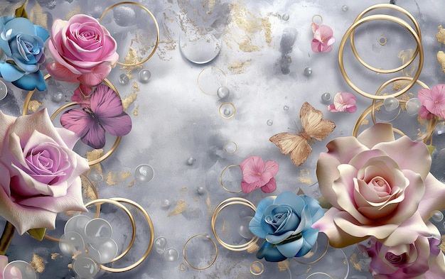 پوستر دیواری سهبعدی طرح گلهای رز و حلقههای طلایی، یکی از خاصترین و شیکترین مدلهایی است که میتواند جلوهای مدرن و لاکچری به دکوراسیون داخلی شما ببخشد. این طرح با ترکیب گلهای رز صورتی، آبی و بنفش به همراه جزئیات طلایی، حالت بصری بسیار لوکس و مجلل ایجاد میکند و در همان نگاه اول، چشم هر بینندهای را خیره میسازد. این پوستر از جدیدترین کالکشن پوسترهای سهبعدی سایت وال یو www.wallu.ir است که با بالاترین کیفیت چاپ و بهترین متریال روز دنیا تولید میشود.