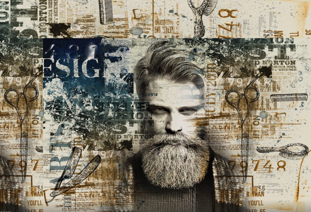 این پوستردیواری با طراحی هنری و سبک وینتیج، گزینهای ایدهآل برای آرایشگاه مردانه و سالن زیبایی آقایان است. مرکز توجه تصویر، چهرهی مردی با ریش پرپشت و استایل کلاسیک است که نماد جذابیت، شخصیت و اعتماد بهنفس مردانه به شمار میرود. در پسزمینه، المانهایی مانند قیچی، شانه و تیغ اصلاح بهصورت هنری و کولاژگونه قرار گرفتهاند که به شکل غیرمستقیم حرفهی آرایشگری را به نمایش میگذارند، بدون اینکه طرح بیش از حد شلوغ یا مستقیم باشد. این ویژگی باعث میشود پوستردیواری علاوه بر جنبه زیبایی، پیام حرفهای و تخصصی نیز منتقل کند.