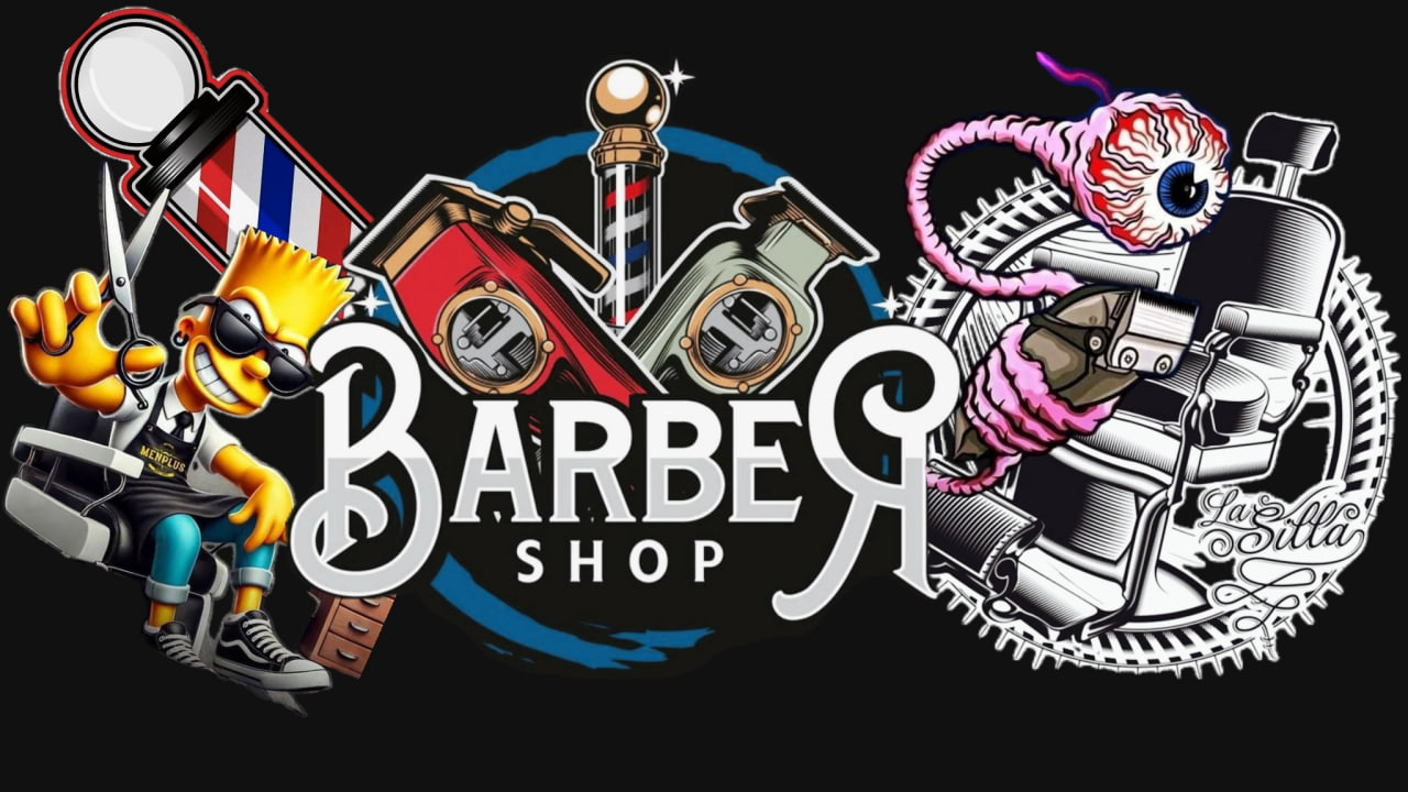 پوستر دیواری باربر شاپ آرایشگر لوگو و ابزار حرفهای با تم بارت سیمپسون