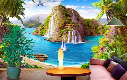 پوستر دیواری با طرح جزیره رویایی با ترکیبی از رنگ های شاد و پر انرژی
